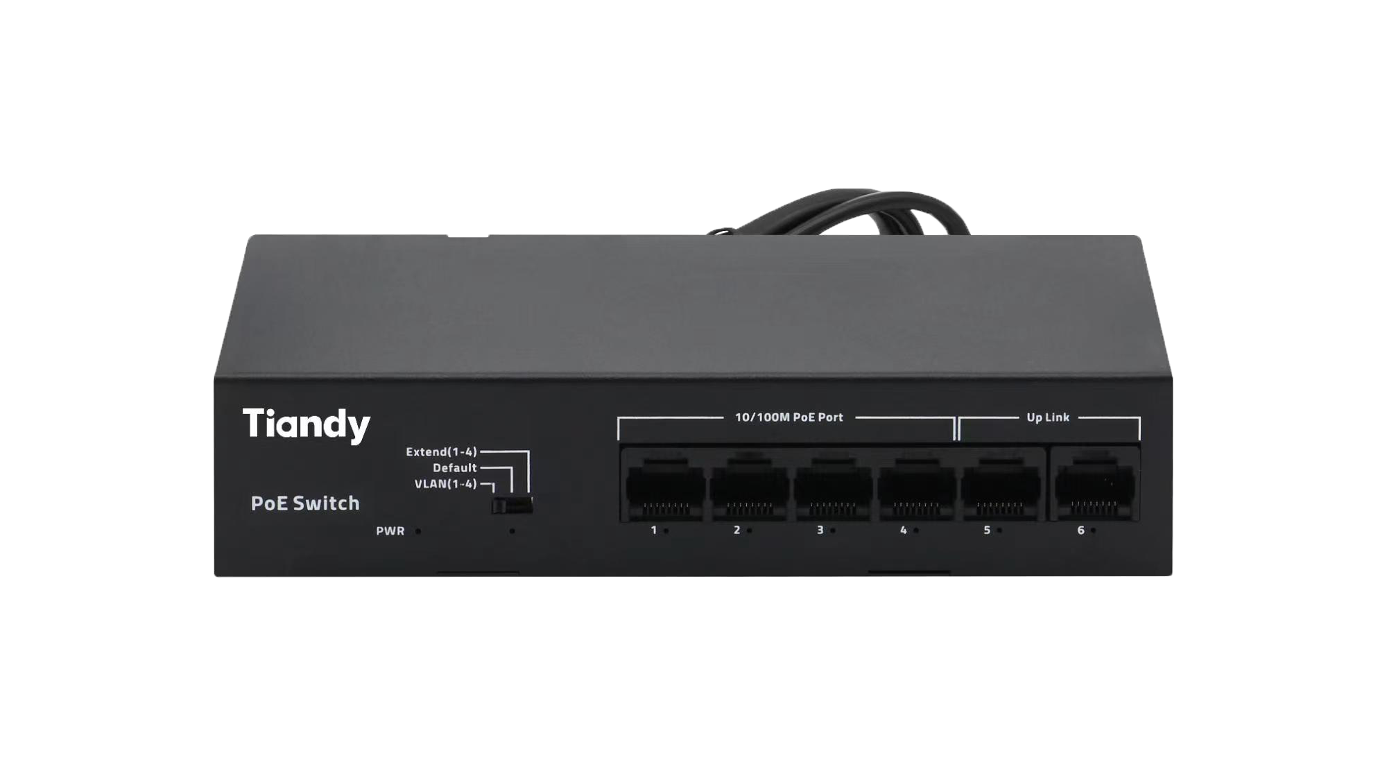 4个百兆PoE口+2个百兆上行网口符合IEEE 802.3、IEEE 802.3u、IEEE802.3x标准PoE总功率40W,,,,,,,单口PoE最高功率30W以太网端口支持10/100M自适应流控方式:全双工采用IEEE 802.3x标准,,,,,,,半双工采用Back pressure标准支持端口自动翻转(Auto MDI/MDIX)采用存储转发的交换机制所有端口支持线速交换零配置特性,,,,,,,自动供给到自适应的设备面板指示灯监控工作状态及帮助故障分析附带三档一键智能拨码开关,,,,,,,支持VLAN、Default、Extend三种模式